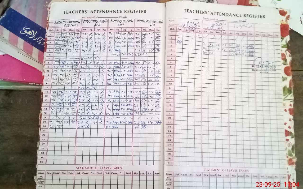| Attendance Register | Head Teacher | MEA with School | Visit Proof |