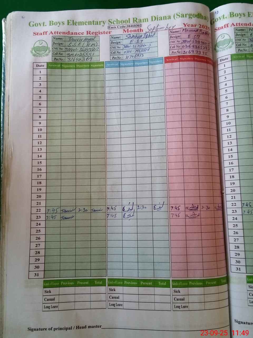 | Name: TA**** HA**** Designation: (School Headmaster's/Headmistress's) SSE URDU Phone/Cell Number: 03**** |