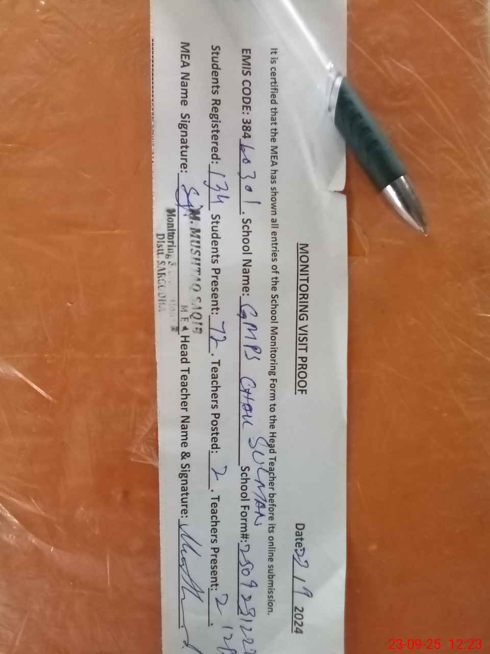 | EMIS Code: 38460301 | Name of School: GMPS CHAK SULEMAN | |||