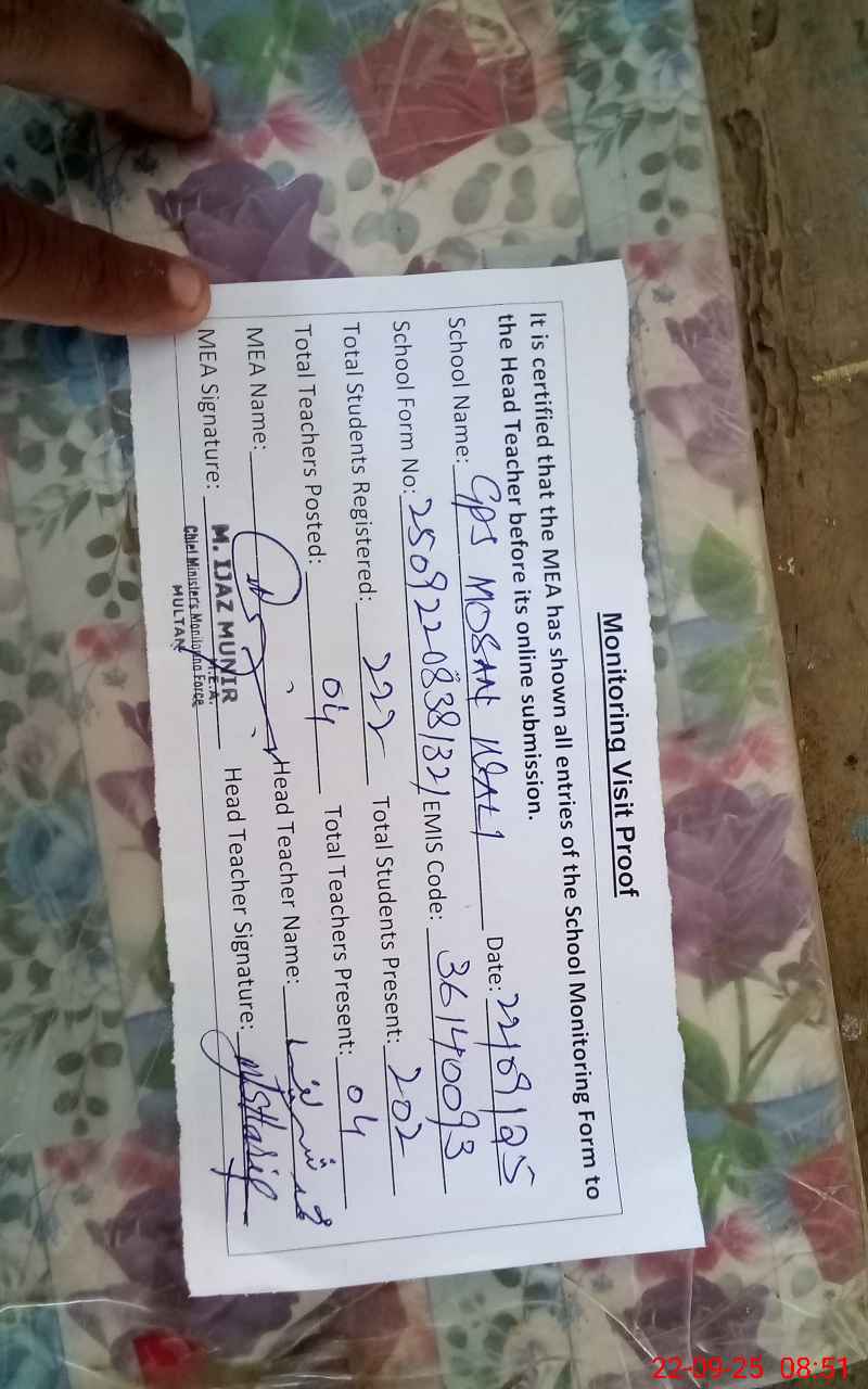 | EMIS Code: 36140093 | Name of School: GPS MOSIN WALI JALALPUR PIRWALA | |||