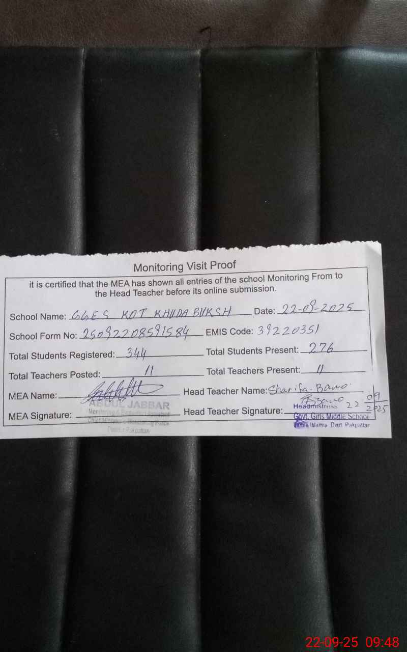 | EMIS Code: 39220351 | Name of School: GGES KOT KHUDA BUKSH | |||