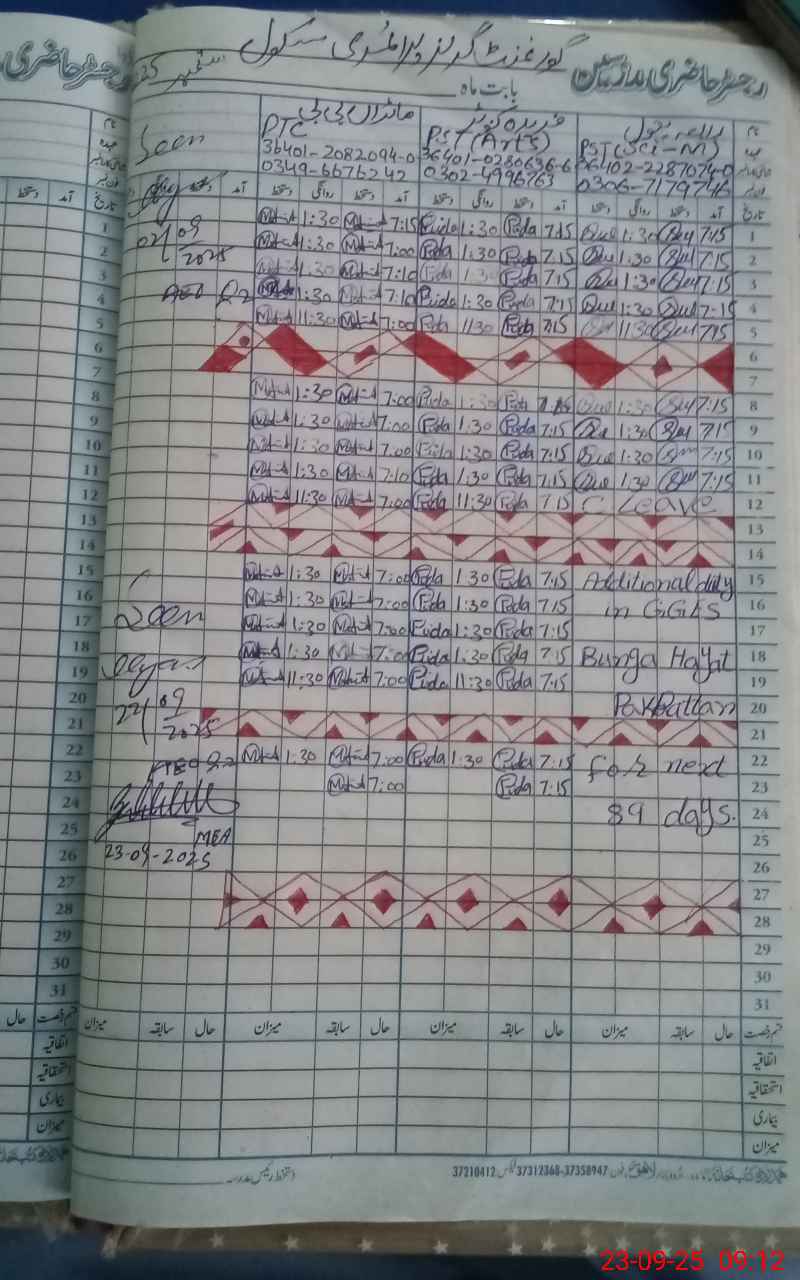 | Name: RA**** BA**** Designation: (School Headmaster's/Headmistress's) PST Phone/Cell Number: 03**** |