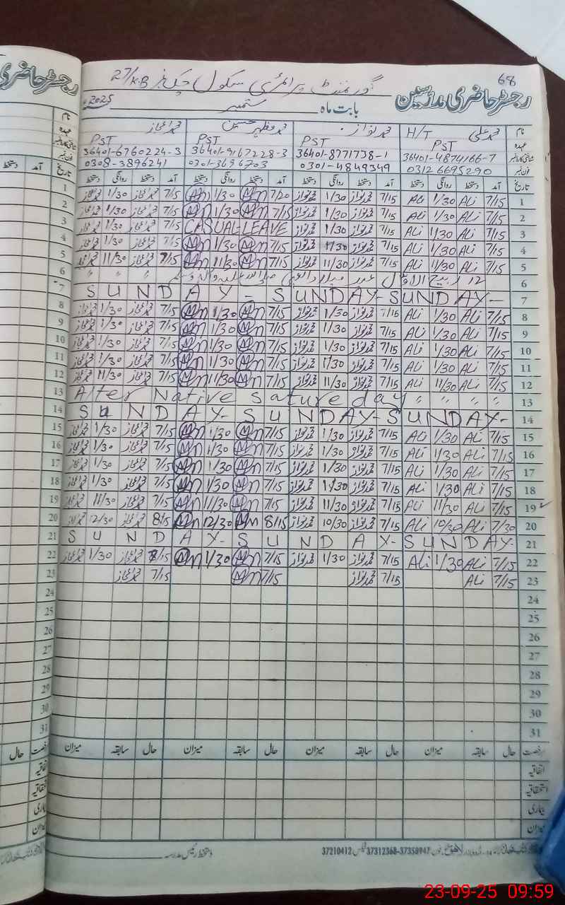 | Name: MU**** AL**** AK**** Designation: (School Headmaster's/Headmistress's) PST Phone/Cell Number: 03**** |