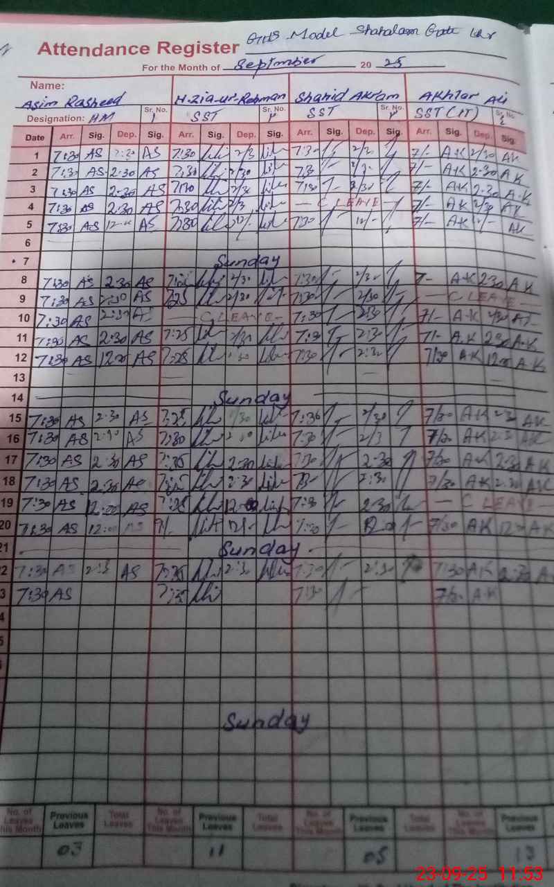 | CNIC | Full Name | Designation | R/C | Absence During Last Calender Month |