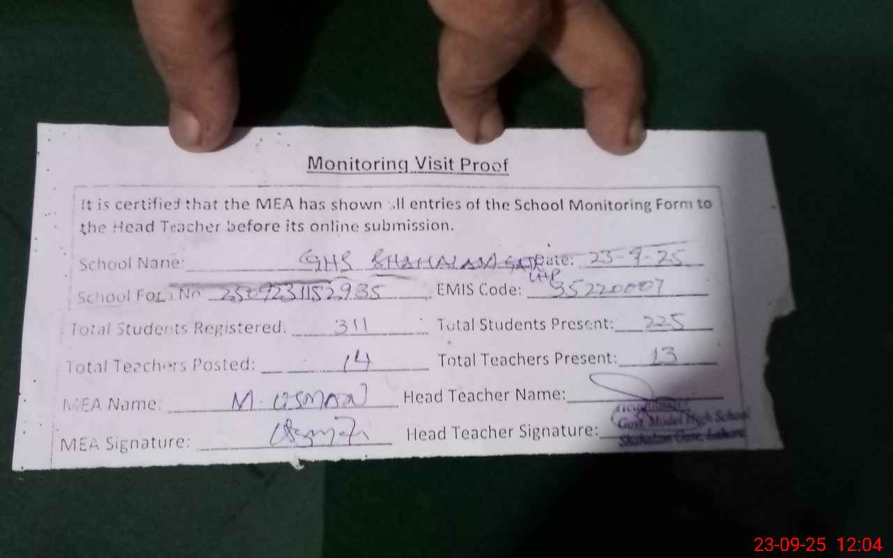 | EMIS Code: 35220007 | Name of School: GHS MODEL SHAHALAM GATE LHR | |||
