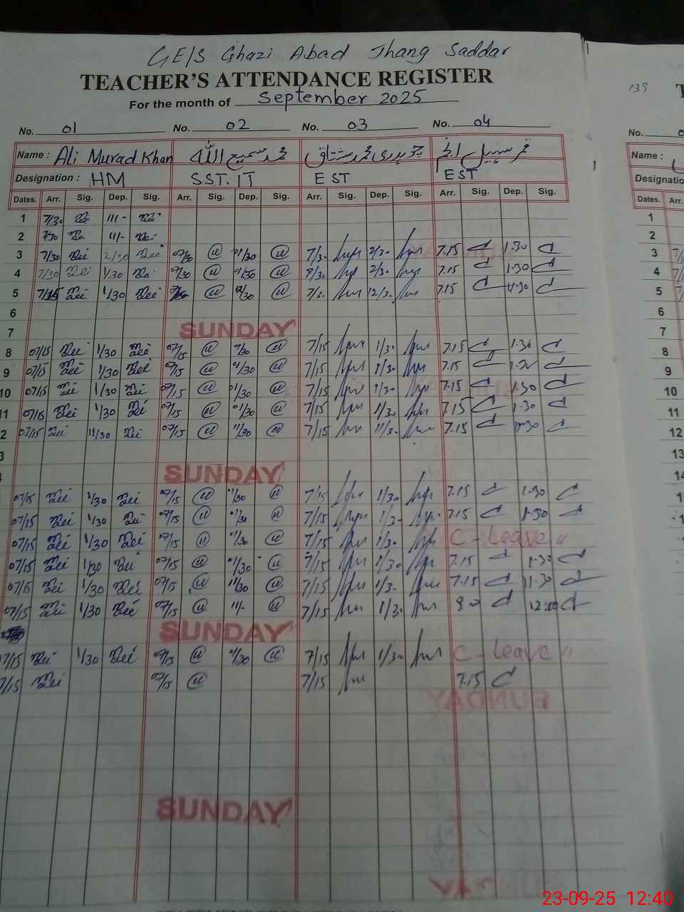 | Name: Al**** Mu**** Kh**** Designation: (School Headmaster's/Headmistress's) EST (HM) Phone/Cell Number: 03**** |