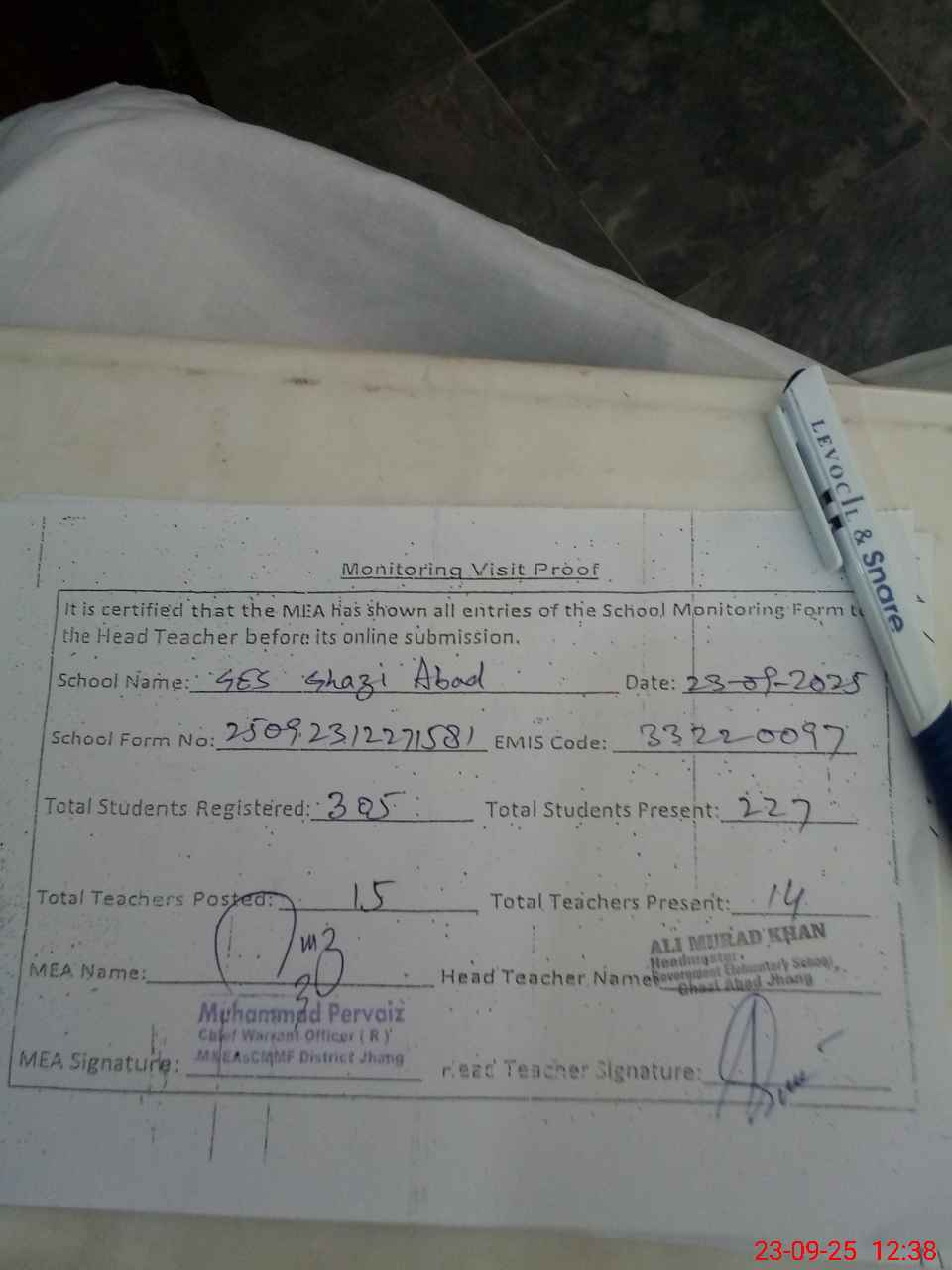 | EMIS Code: 33220097 | Name of School: GES GHAZI ABAD | |||