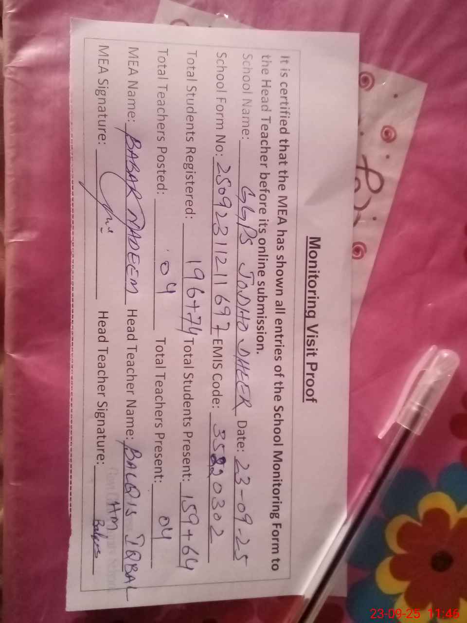 | EMIS Code: 35220302 | Name of School: GGPS JODHO DHEER | |||