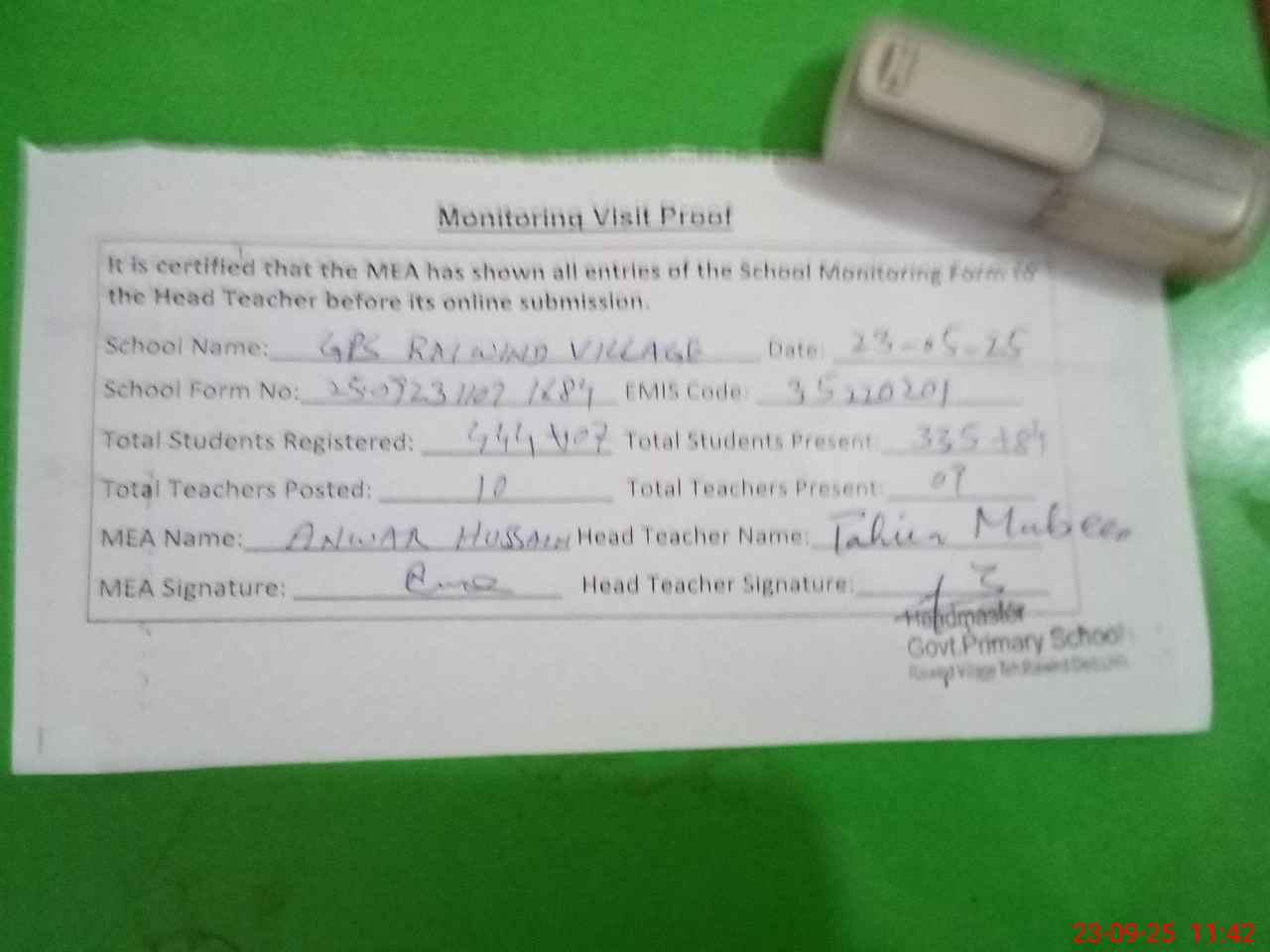 | EMIS Code: 35220201 | Name of School: GPS RAIWIND VILLAGE | |||
