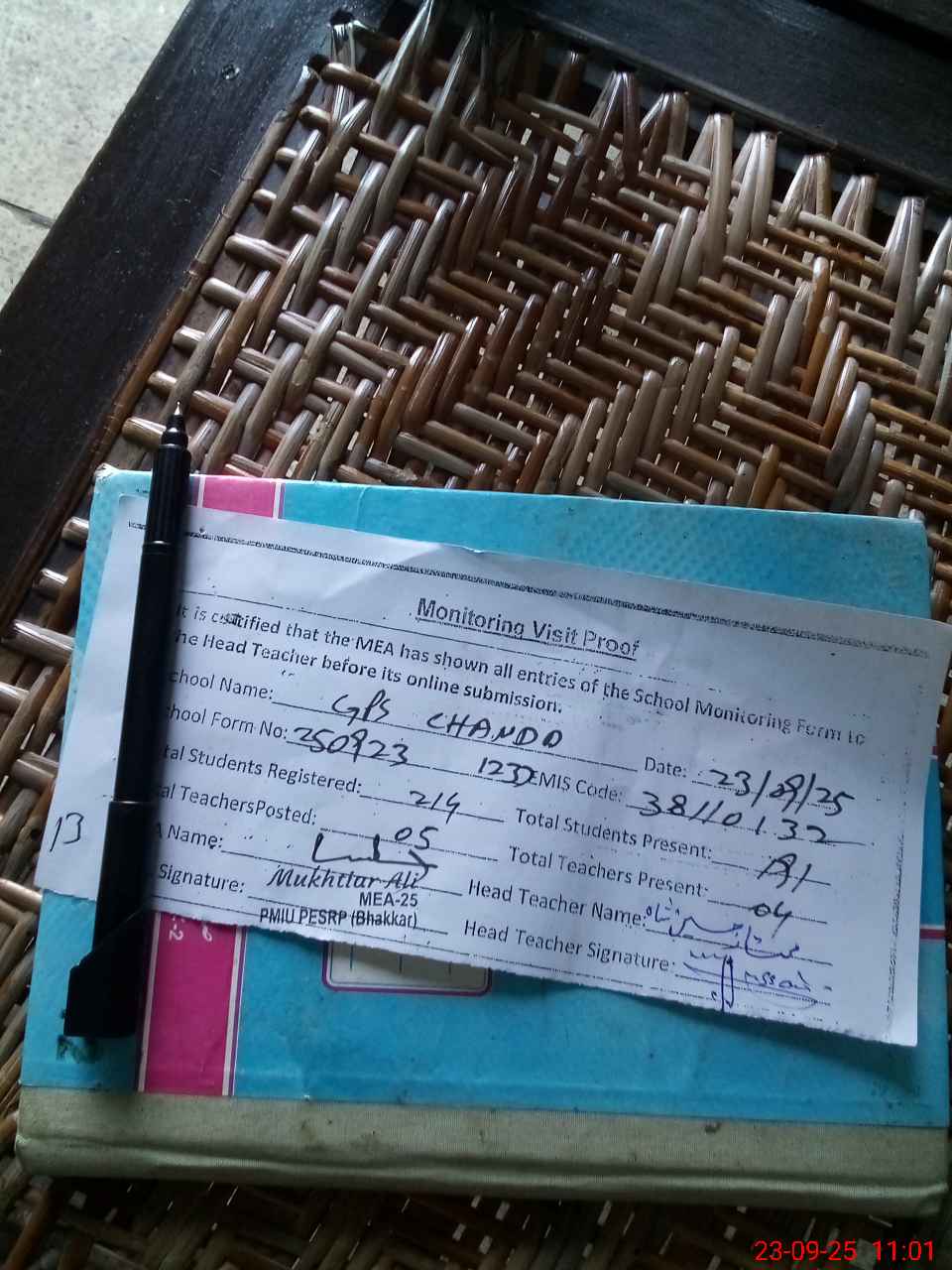 | EMIS Code: 38110132 | Name of School: GPS CHANDA | |||
