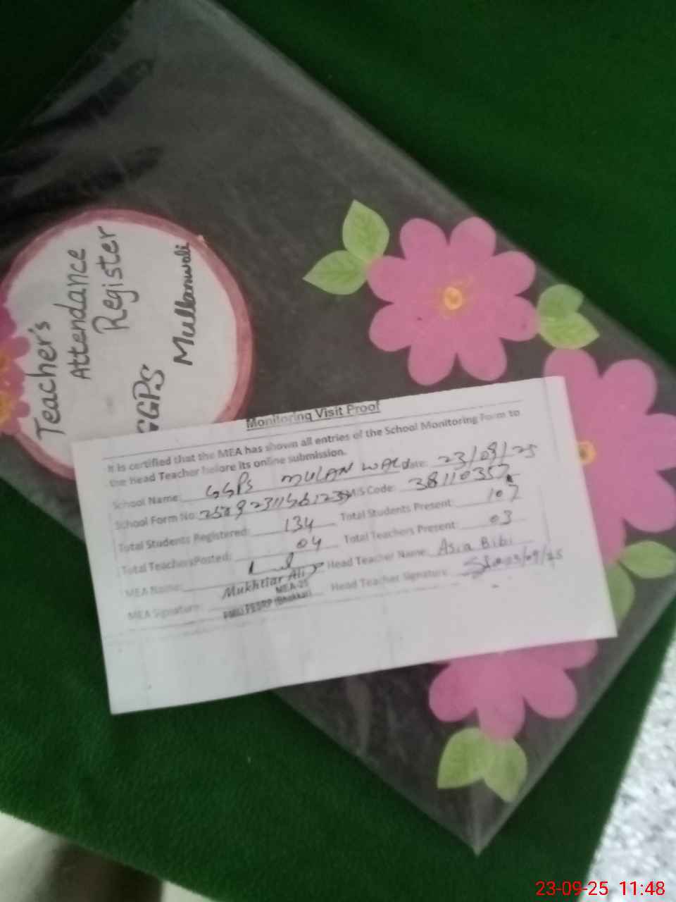 | EMIS Code: 38110357 | Name of School: GGPS MULLAN WALI | |||