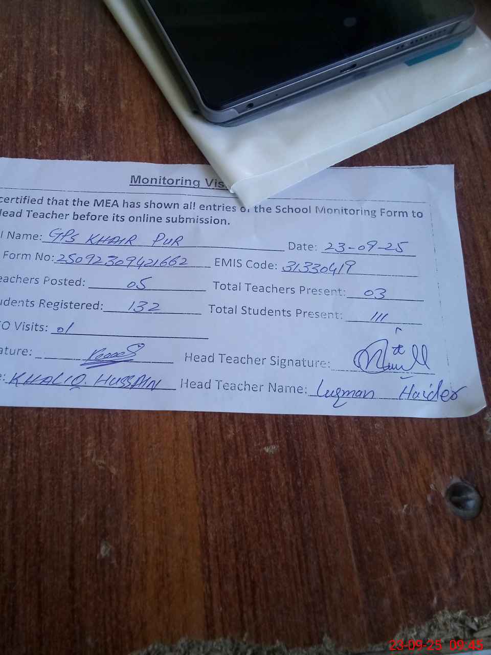 | EMIS Code: 31330419 | Name of School: GPS KHAIR PUR | |||