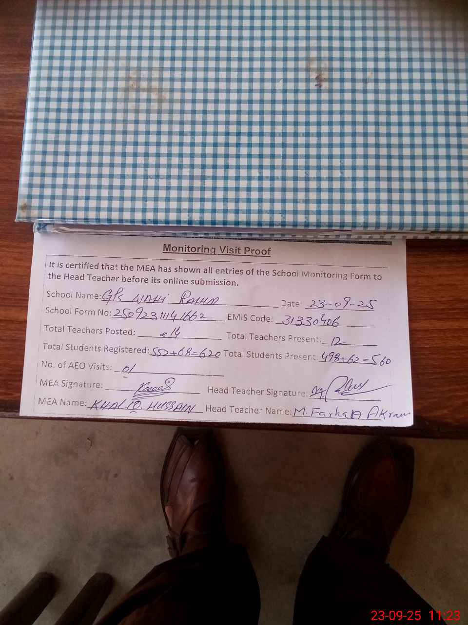 | EMIS Code: 31330406 | Name of School: GPS WAHI RAHIM | |||