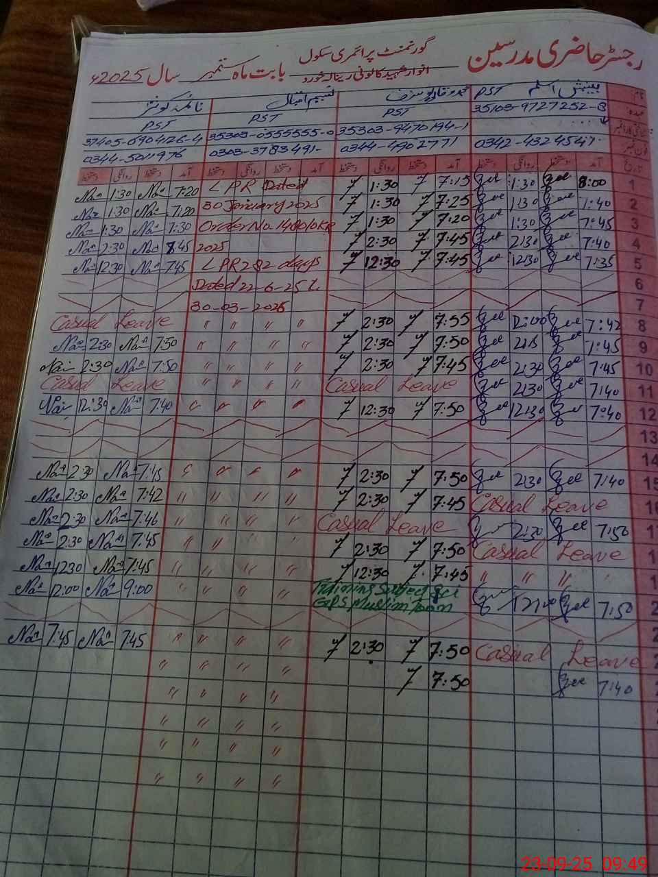 | CNIC | Full Name | Designation | R/C | Absence During Last Calender Month |