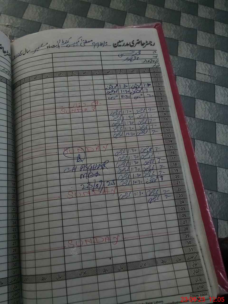 | CNIC | Full Name | Designation | R/C | Absence During Last Calender Month |