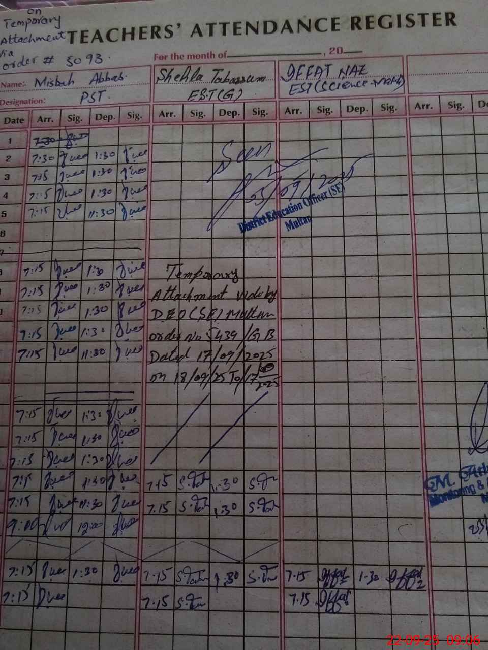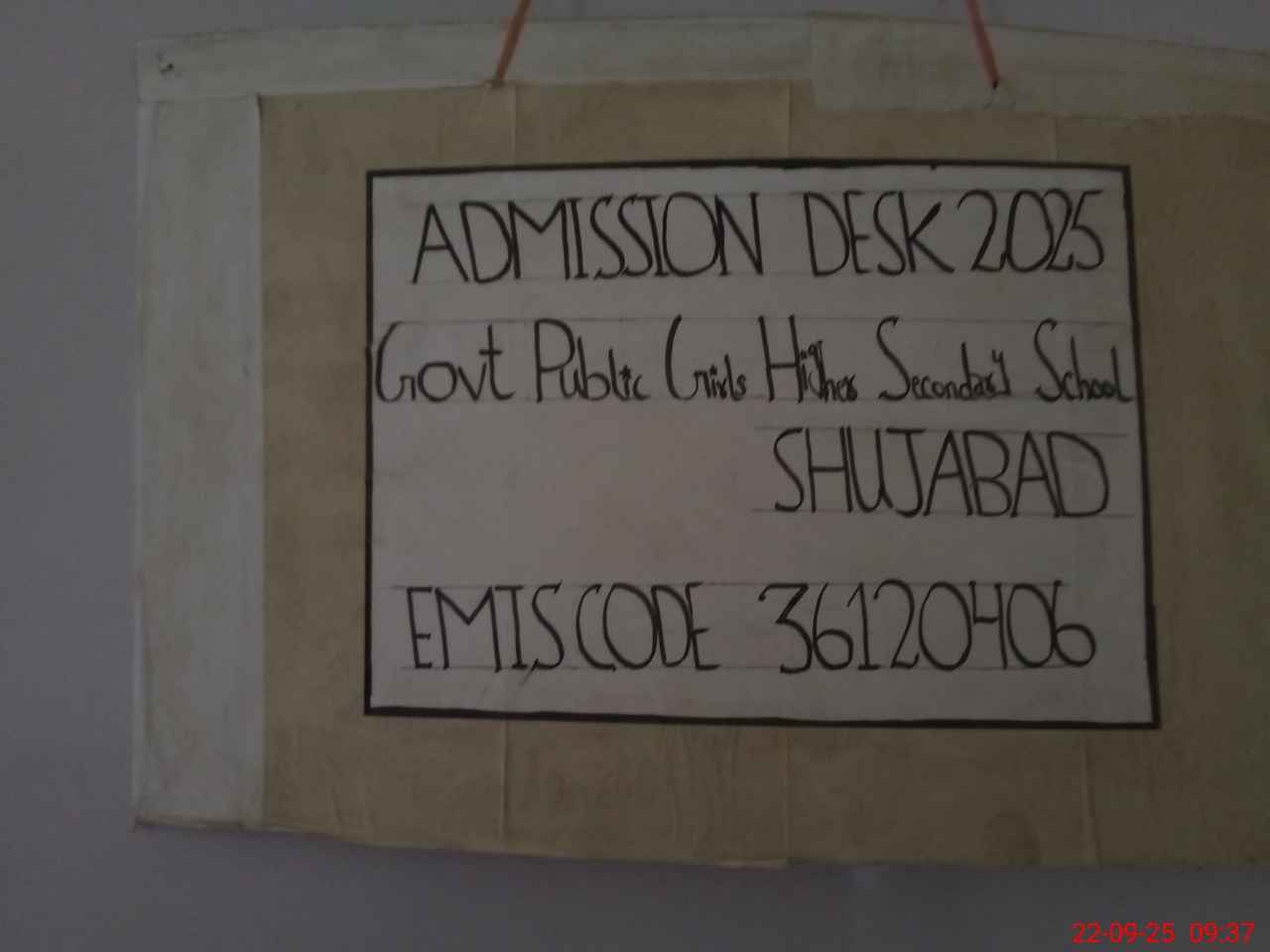 | EMIS Code: 36120406 | Name of School: Govt. Public Girls Higher Secondary School Shujabad | |||
