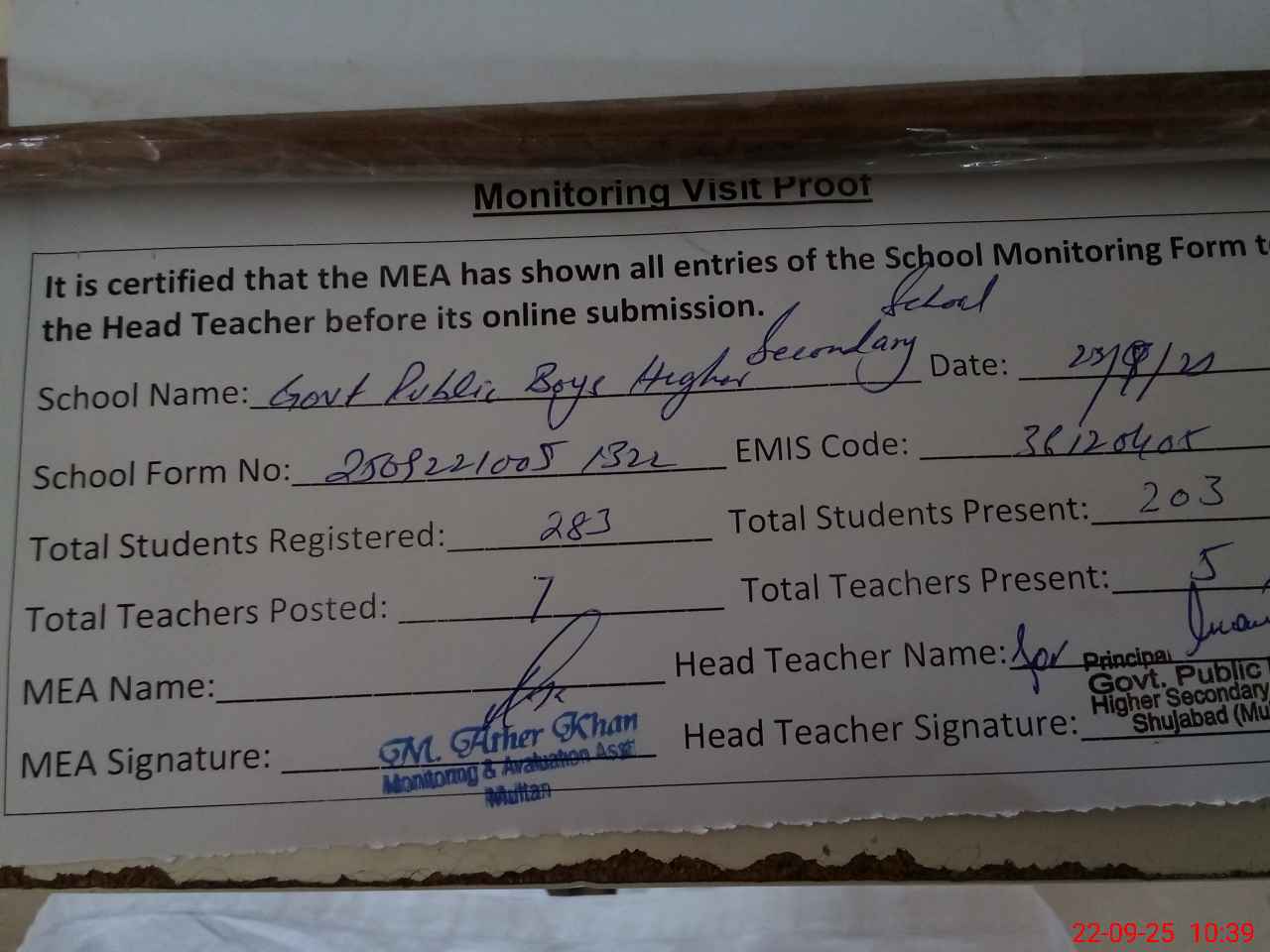 | EMIS Code: 36120405 | Name of School: Govt. Public Boys Higher Secondary School Shujabad | |||