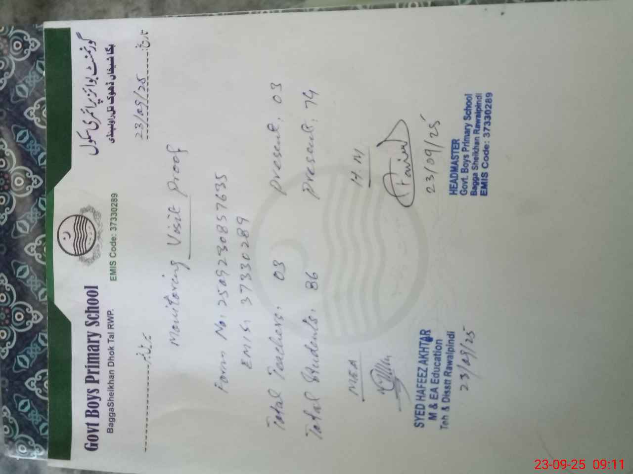 | EMIS Code: 37330289 | Name of School: GPS BAGGA SHEIKHAN | |||