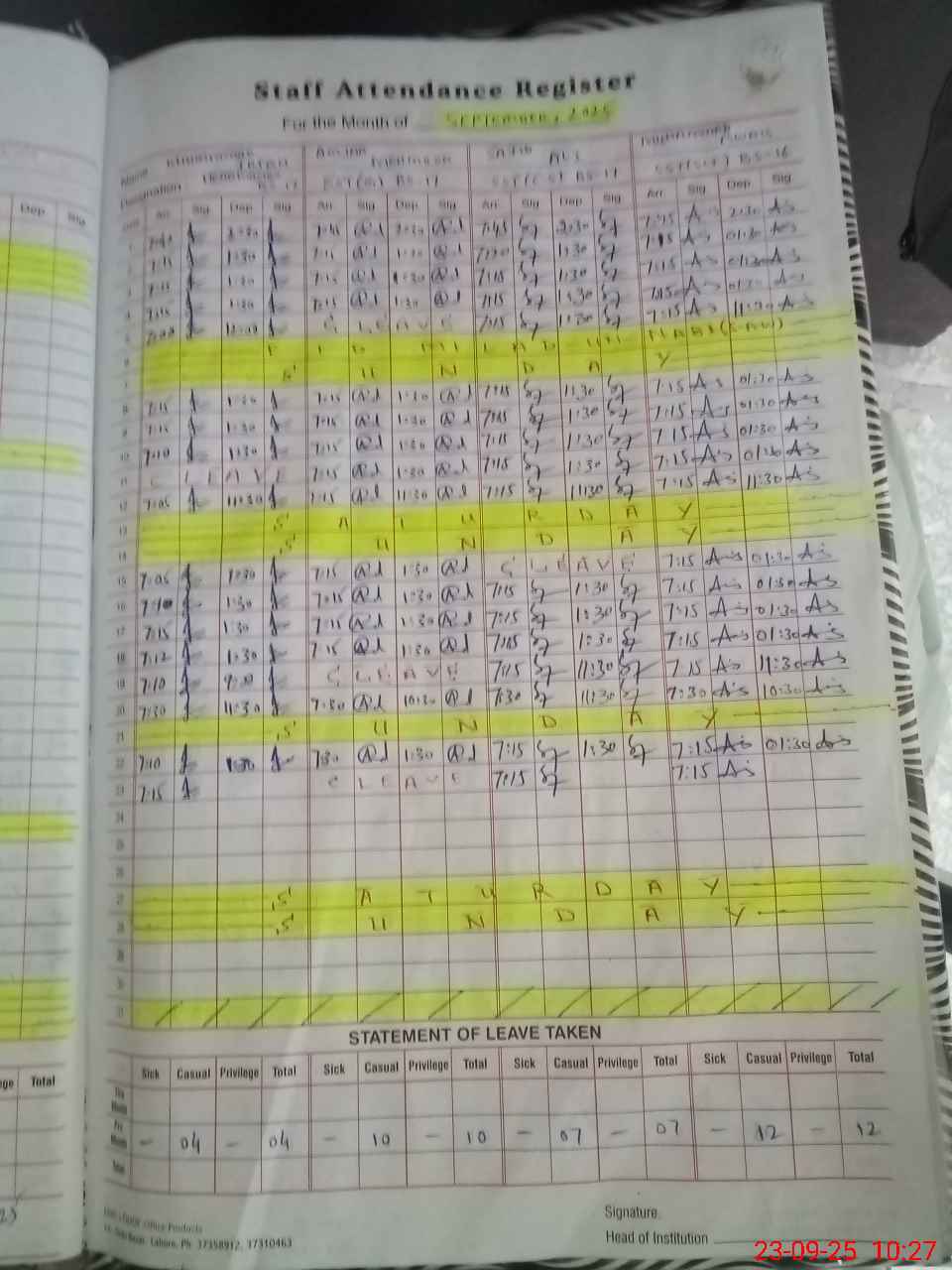 | 37**** | Kh**** Sh**** | N QASID | Regular | 1 | 0 | 0 | 0 | 0 | 0 | 0 | 0 | 1 | Casual |