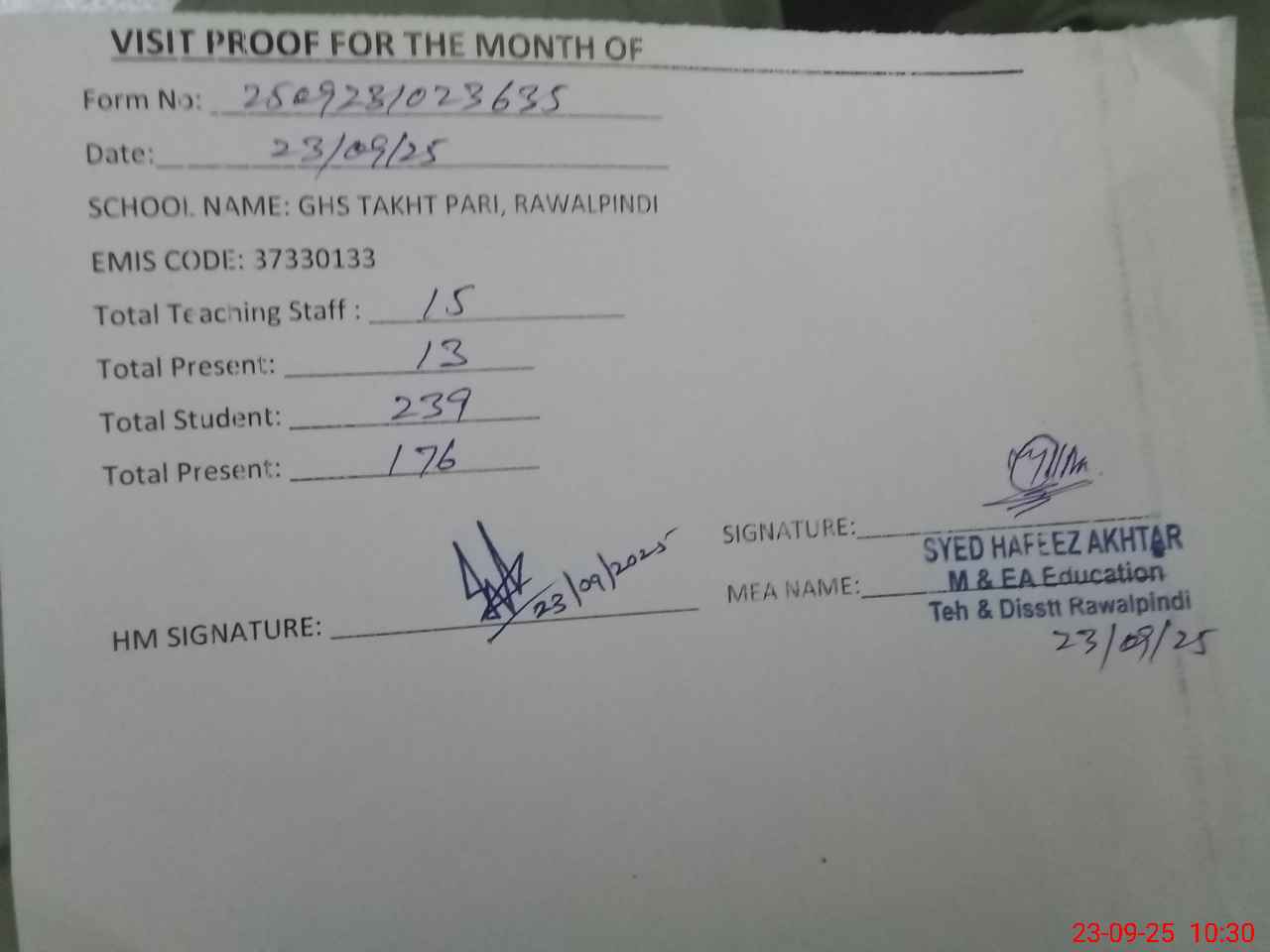 | EMIS Code: 37330133 | Name of School: GHS TAKHT PARI | |||