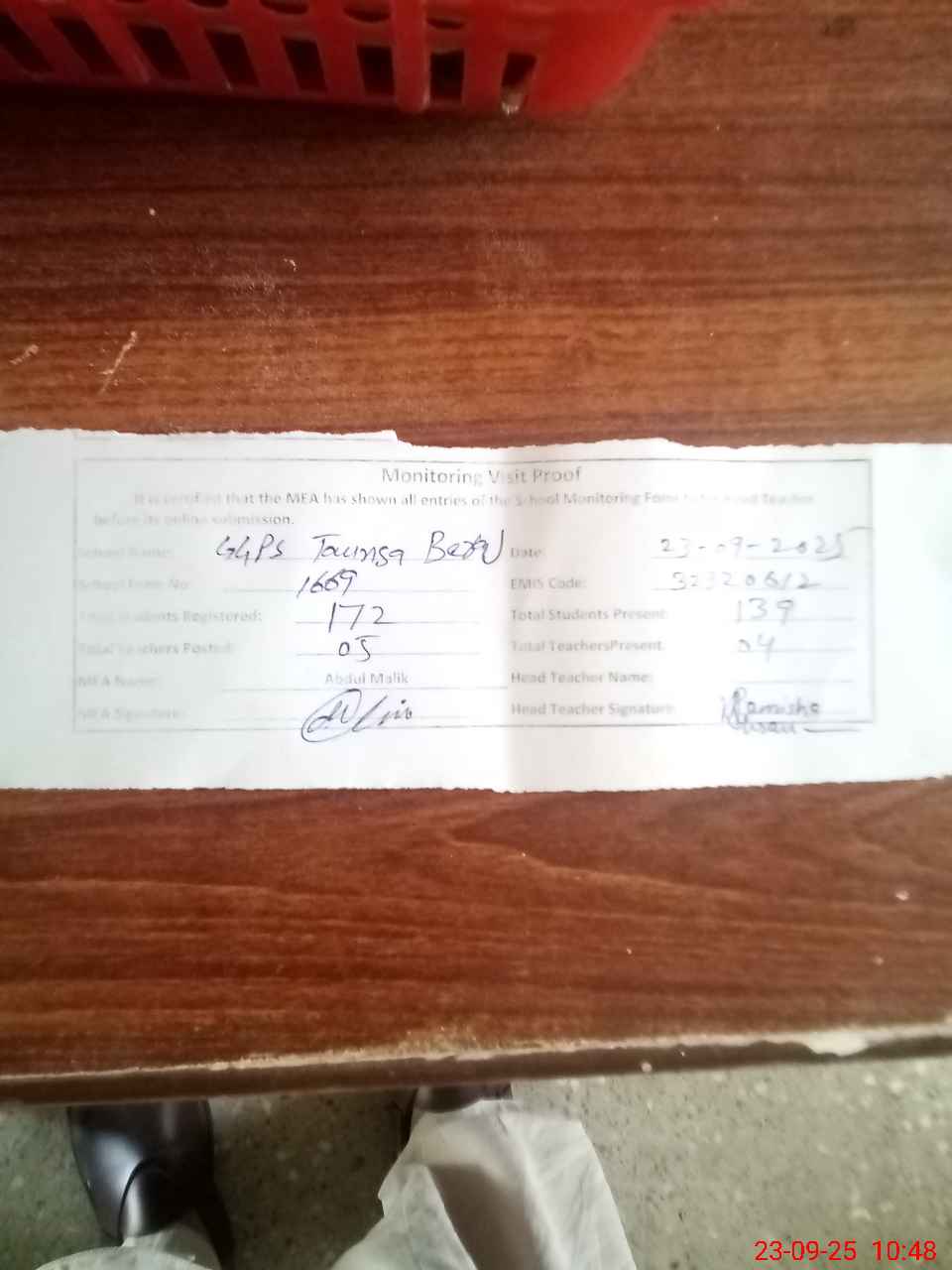 | EMIS Code: 32320612 | Name of School: GGPS TAUNSA BAIRAGE | |||