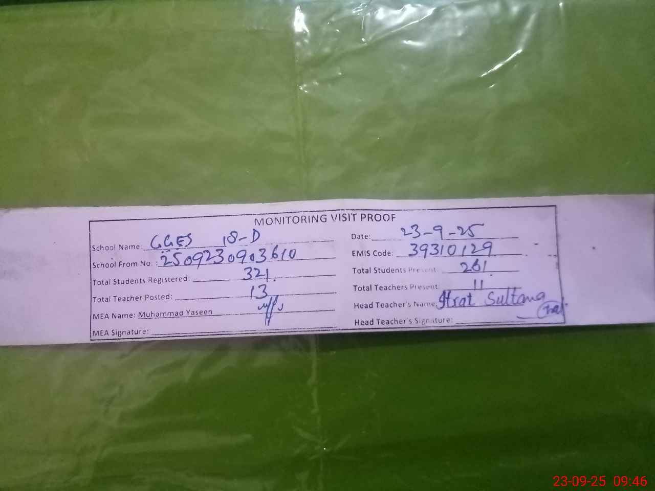| EMIS Code: 39310129 | Name of School: GGES 18/D SHER GARH | |||
