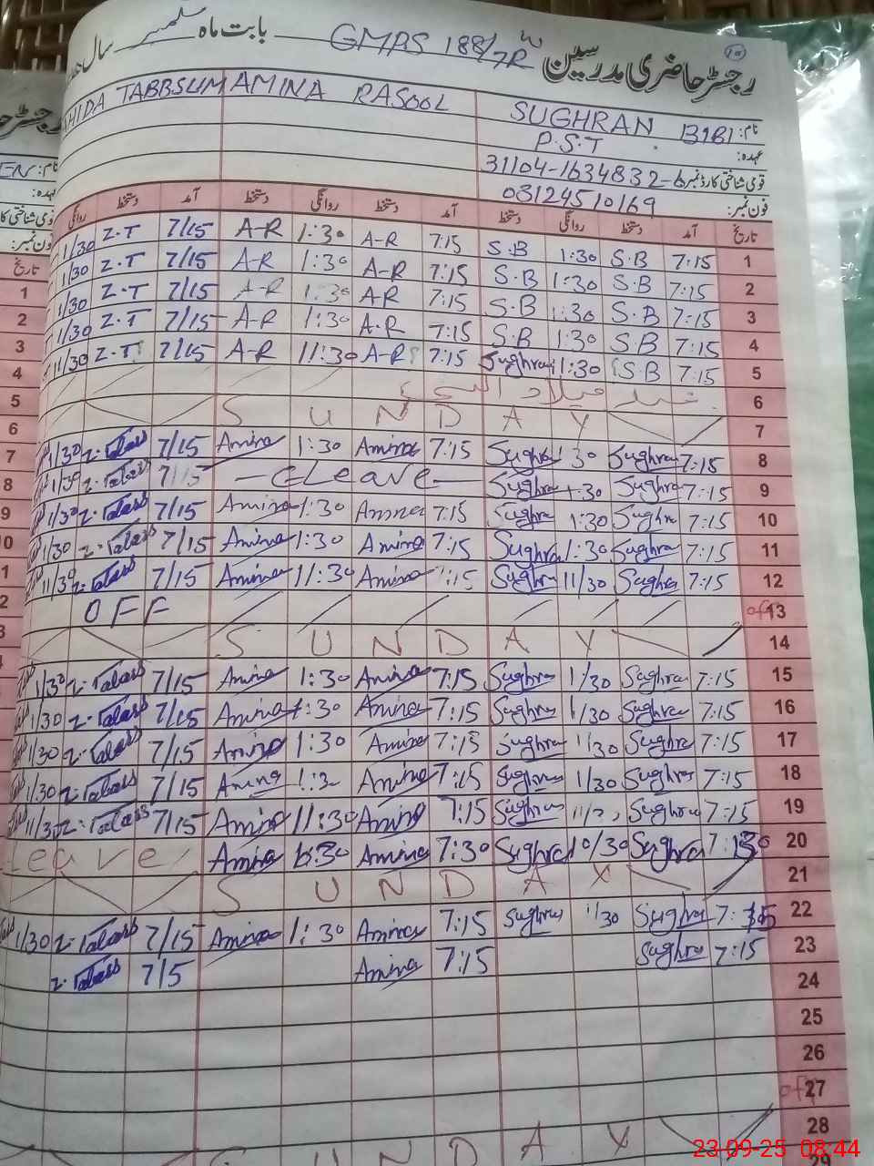 | Name: Su**** Bi**** Designation: (School Headmaster's/Headmistress's) PST Phone/Cell Number: 03**** |