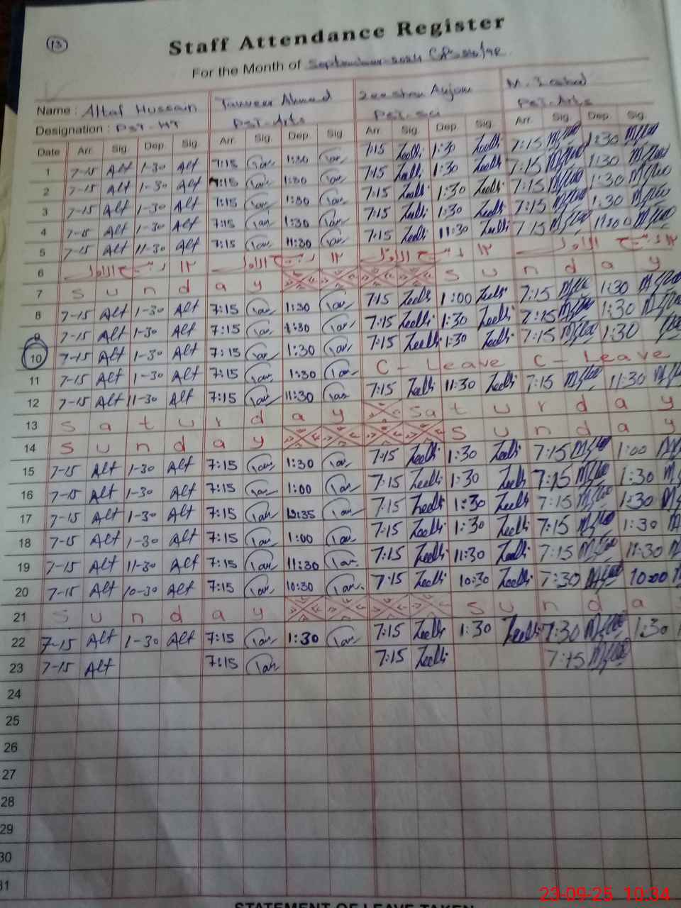 | CNIC | Full Name | Designation | R/C | Absence During Last Calender Month |