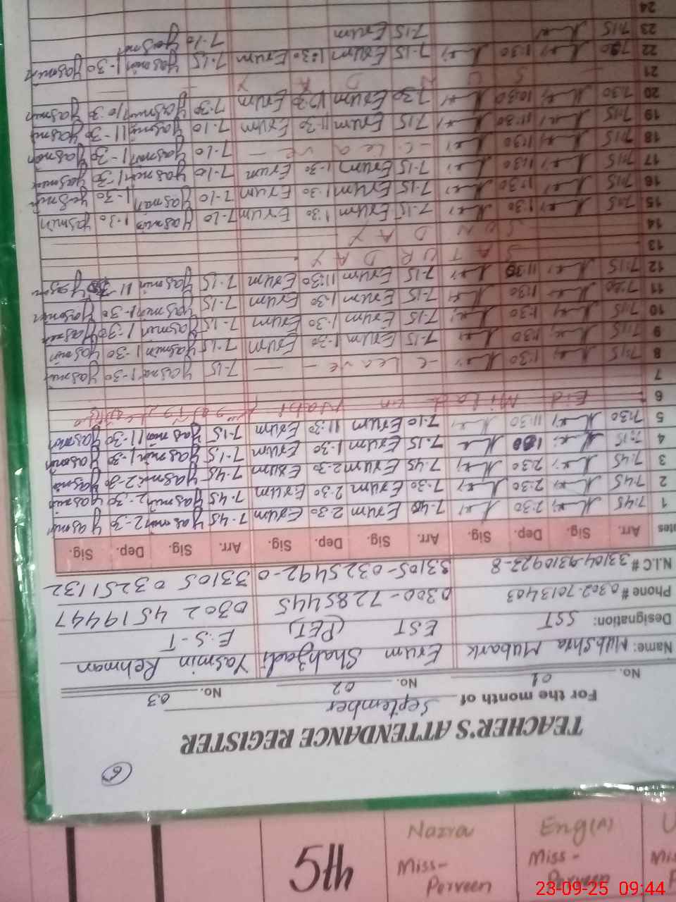 | Name: Mu**** Mu**** Designation: (School Headmaster's/Headmistress's) Sst(G) Phone/Cell Number: 03**** |