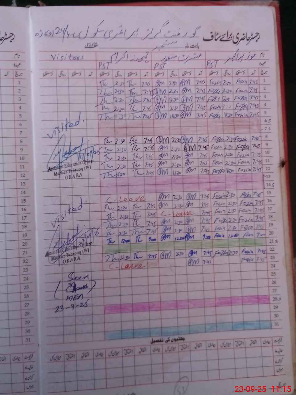 | District: OKARA | Tehsil: OKARA | Markaz: TABROOQ - FEMALE | Level: Primary | |