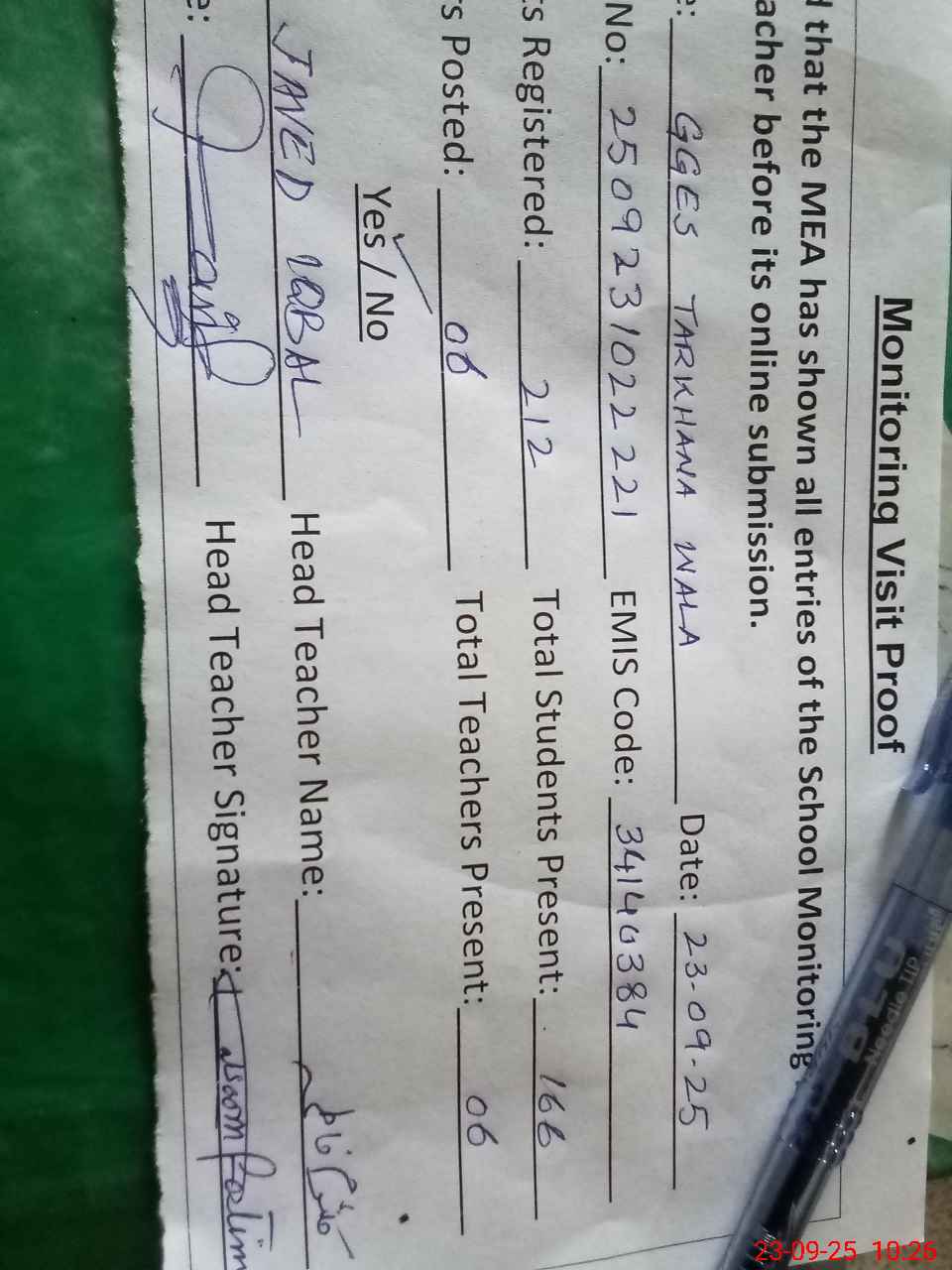 | EMIS Code: 34140384 | Name of School: GGES TARKHANA WALA | |||