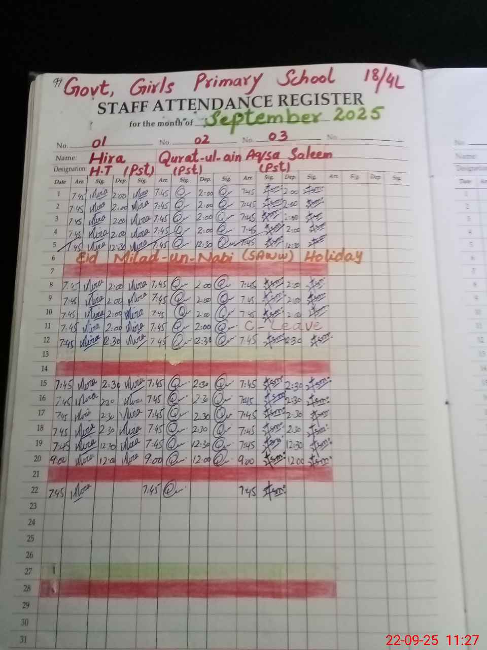 | CNIC | Full Name | Designation | R/C | Absence During Last Calender Month |