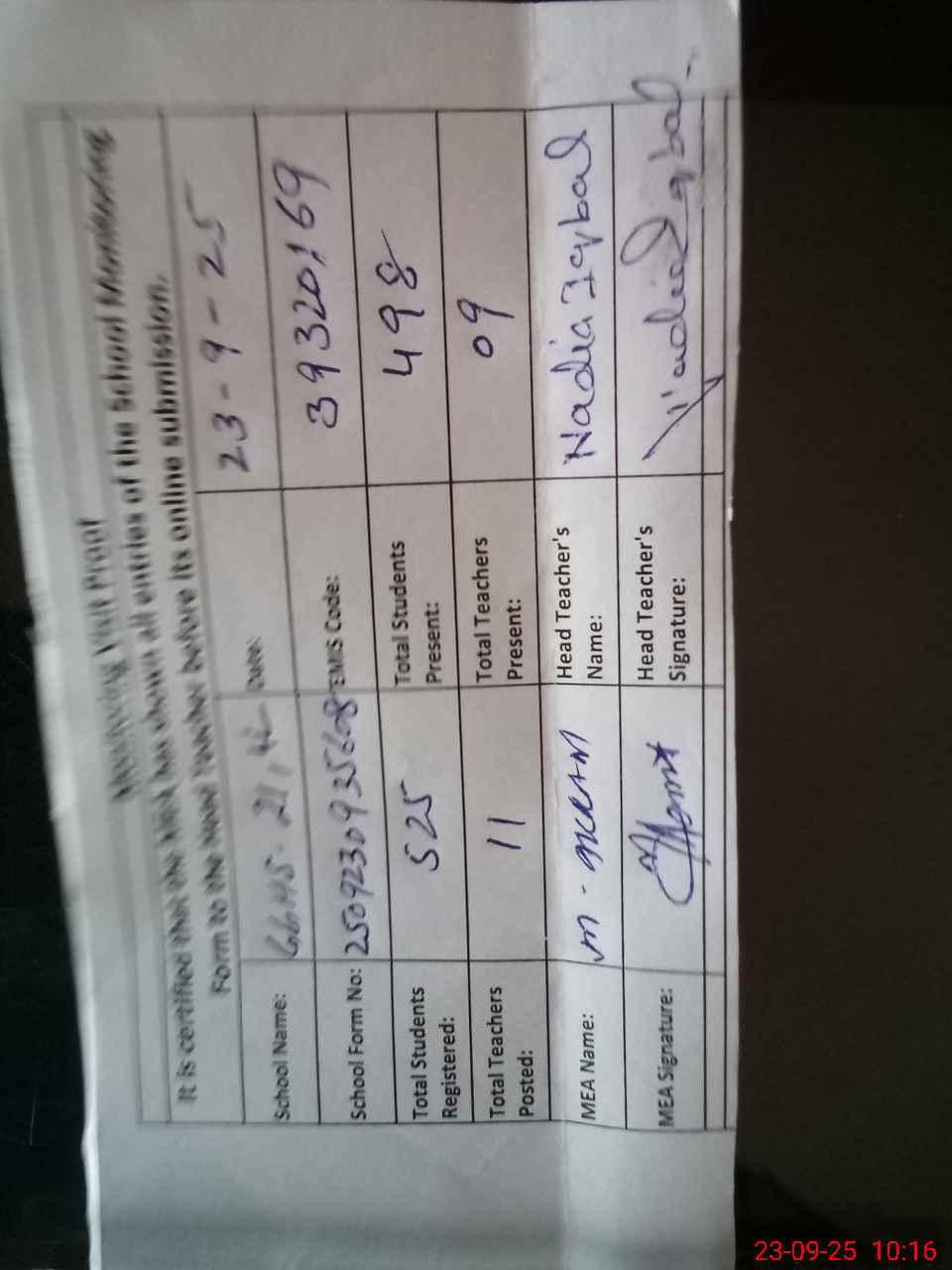 | Name: Na**** Iq**** Designation: (School Headmaster's/Headmistress's) EST Phone/Cell Number: 03**** |