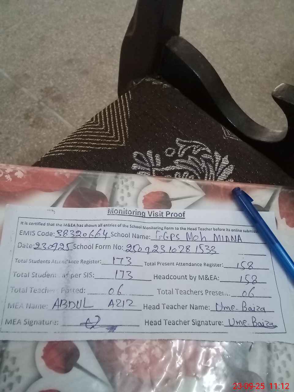 | EMIS Code: 38320664 | Name of School: GGPS MIANA MOHALLAH | |||
