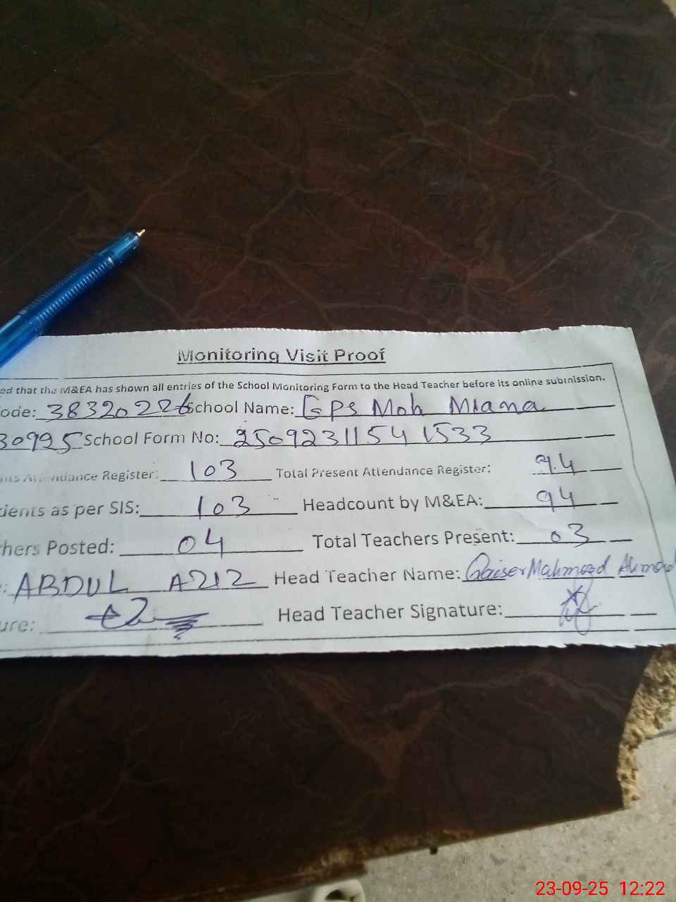 | EMIS Code: 38320226 | Name of School: GPS MOH. MIANA | |||