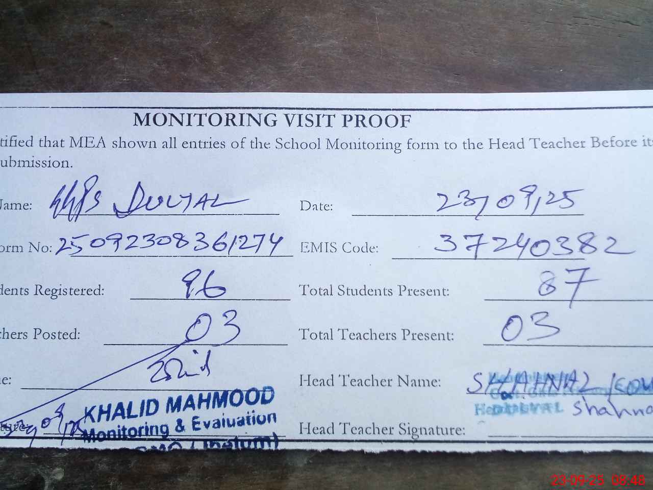 | EMIS Code: 37240382 | Name of School: GGPS DULYAAL | |||