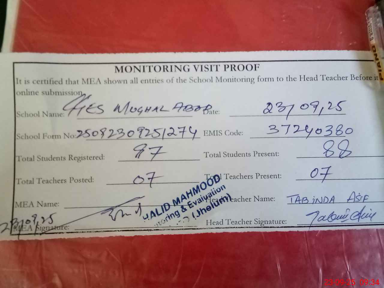 | EMIS Code: 37240380 | Name of School: GGES MUGHAL ABAD | |||