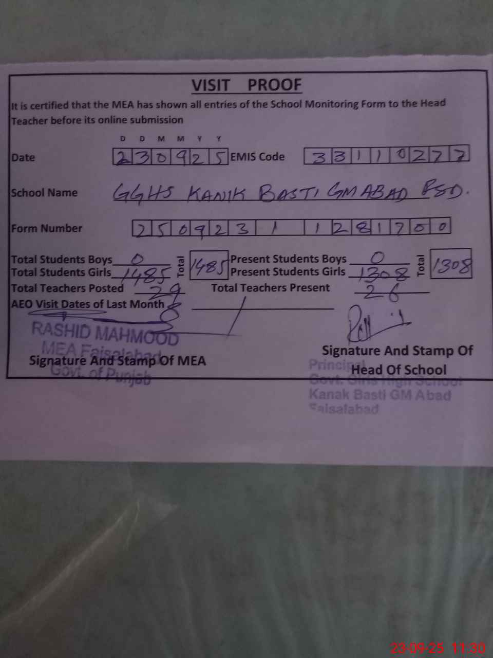 | EMIS Code: 33110277 | Name of School: GGHS KANIK BASTI G.M. ABAD | |||