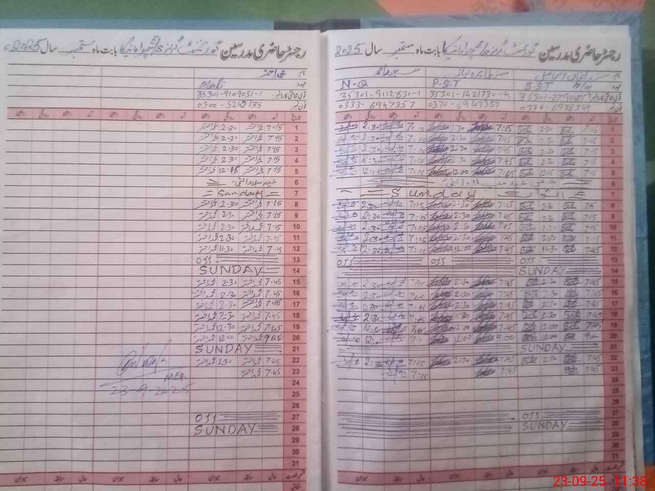 | Name: Zu**** Bi**** Designation: (School Headmaster's/Headmistress's) SST GEN Phone/Cell Number: 03**** |