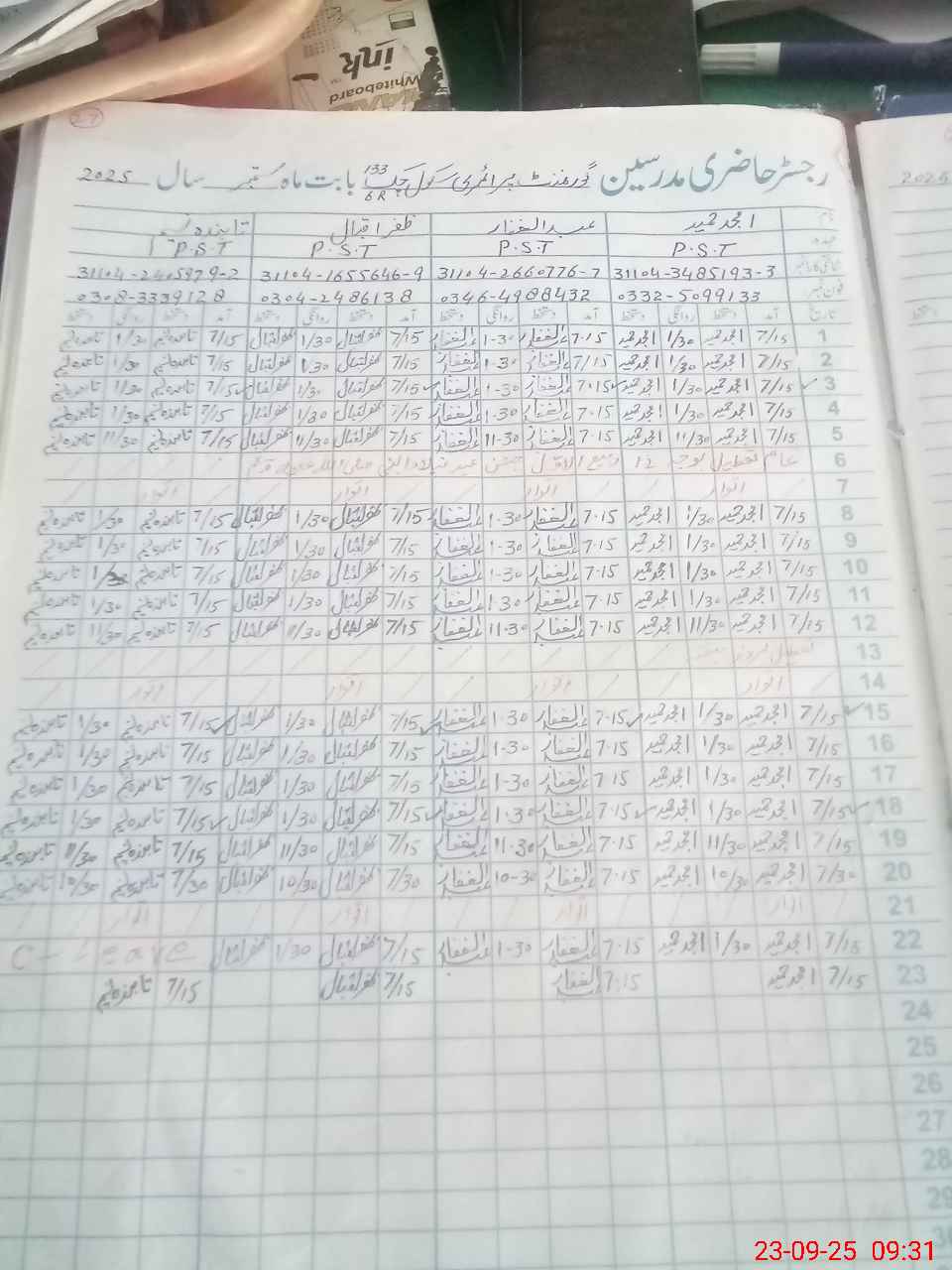 | Name: Am**** Ha**** Designation: (School Headmaster's/Headmistress's) PST Phone/Cell Number: 03**** |