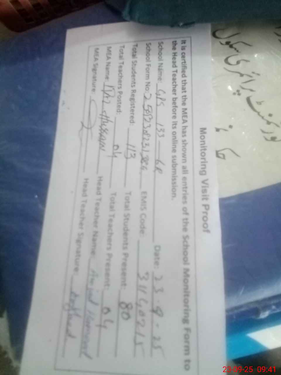 | EMIS Code: 31140215 | Name of School: GPS CHAK 133/6-R | |||
