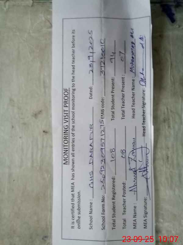 | EMIS Code: 37210010 | Name of School: GHS DARAPUR | |||