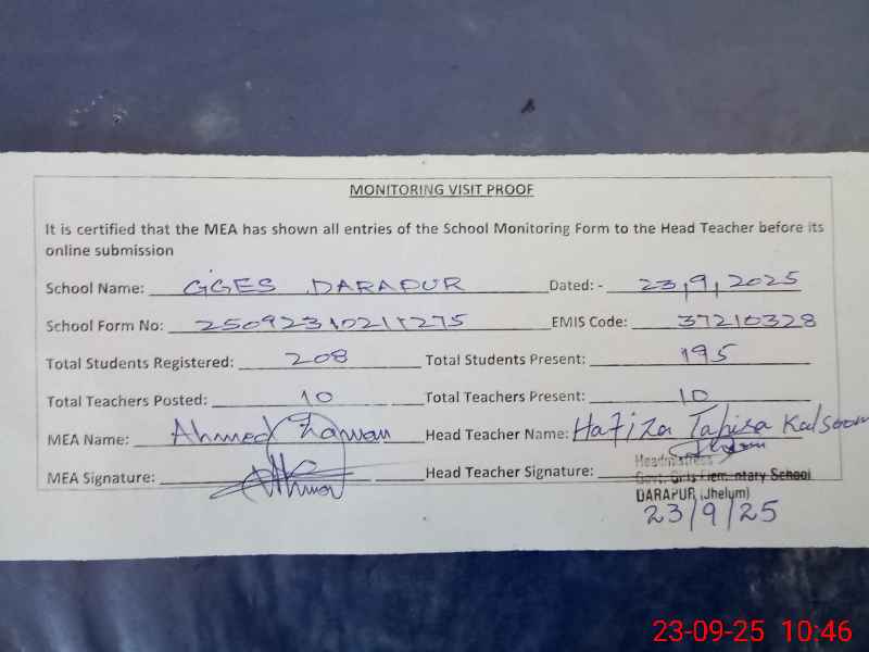 | EMIS Code: 37210328 | Name of School: GGES DARA PUR | |||