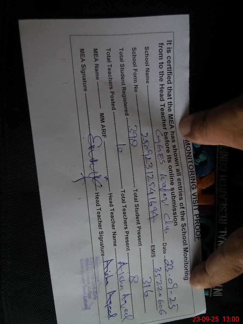 | EMIS Code: 35220606 | Name of School: GGES WAFAQI COLONY (EX-MCL) | |||