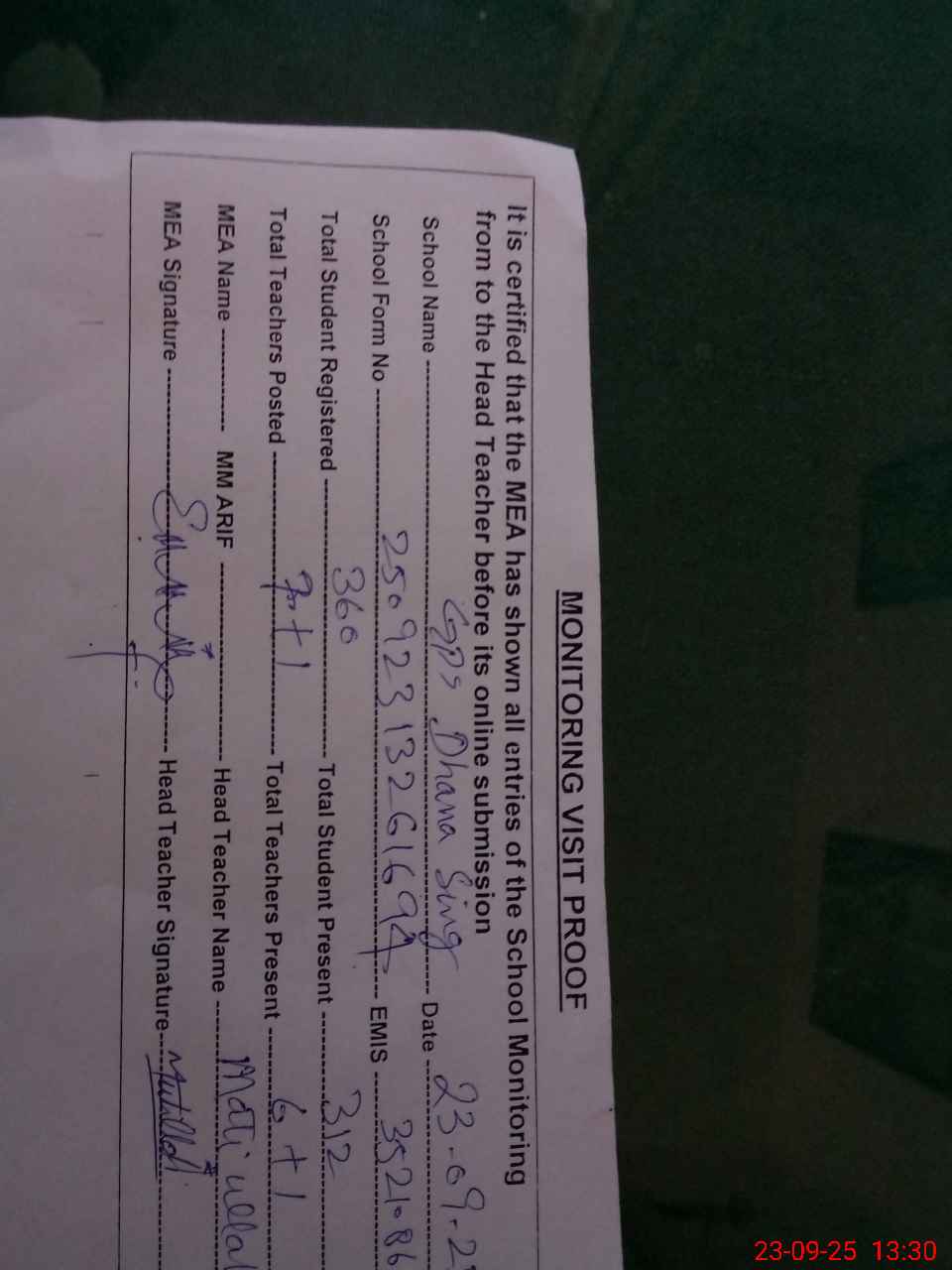 | Certified that this School was Inspected by the Undersigned MEA/DMO Today and the Information Stated Above is as Per Record. | |||||