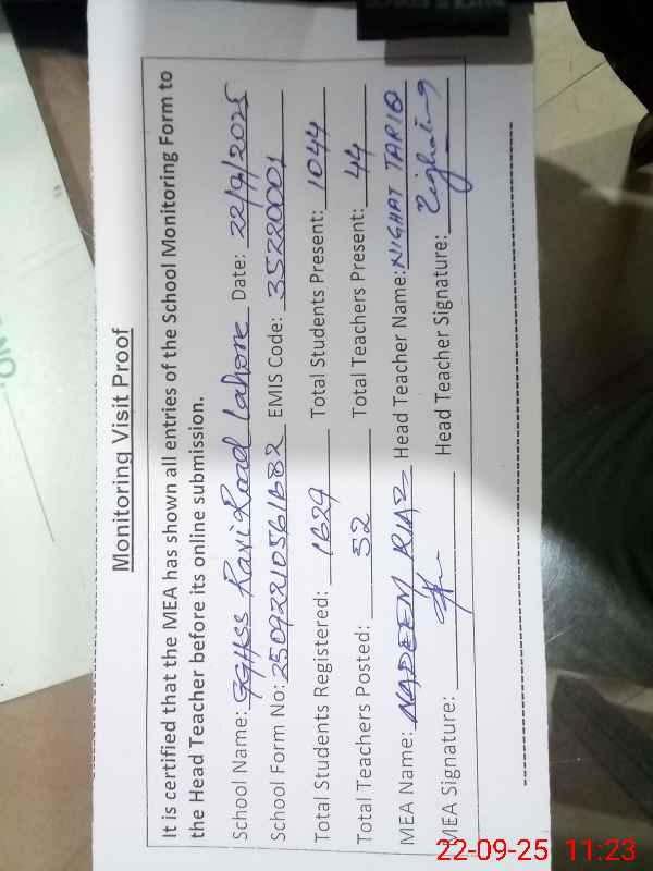 | EMIS Code: 35220001 | Name of School: GGHSS RAVI ROAD (NEAR DATA DARBAR) | |||