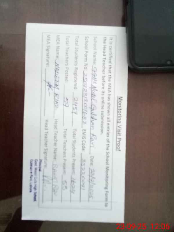 | EMIS Code: 35220091 | Name of School: GGHS MODEL GULSHAN RAVI 202-E BLOCK | |||