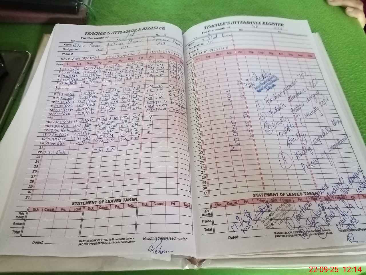 | Name: RE**** PE**** Designation: (School Headmaster's/Headmistress's) Head Mistress Phone/Cell Number: 03**** |