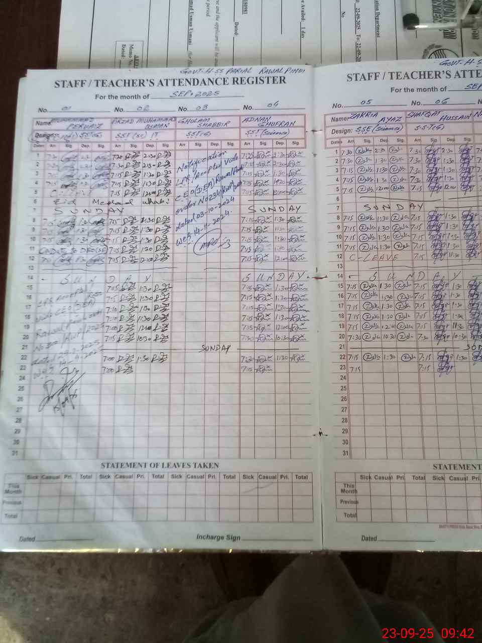 | CNIC | Full Name | Designation | R/C | Absence During Last Calender Month |