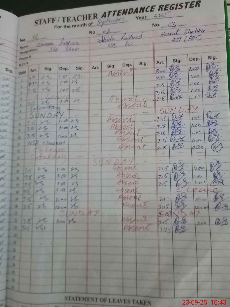 | 37**** | Ab**** Ra**** | SST | Regular | 0 | 0 | 0 | 0 | 0 | 0 | 0 | 0 | 0 | Absent (Un-Authorized) |